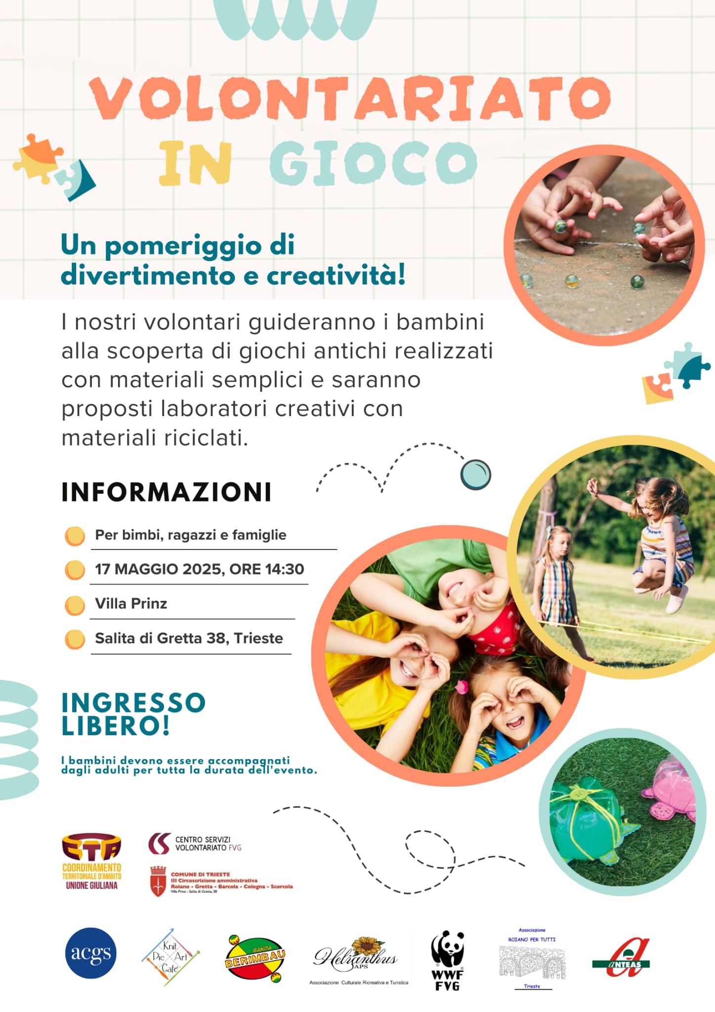 I volontari guideranno i bambini alla scoperta di giochi antichi realizzati con materiali semplici; saranno proposti laboratori creativi con materiali riciclati.